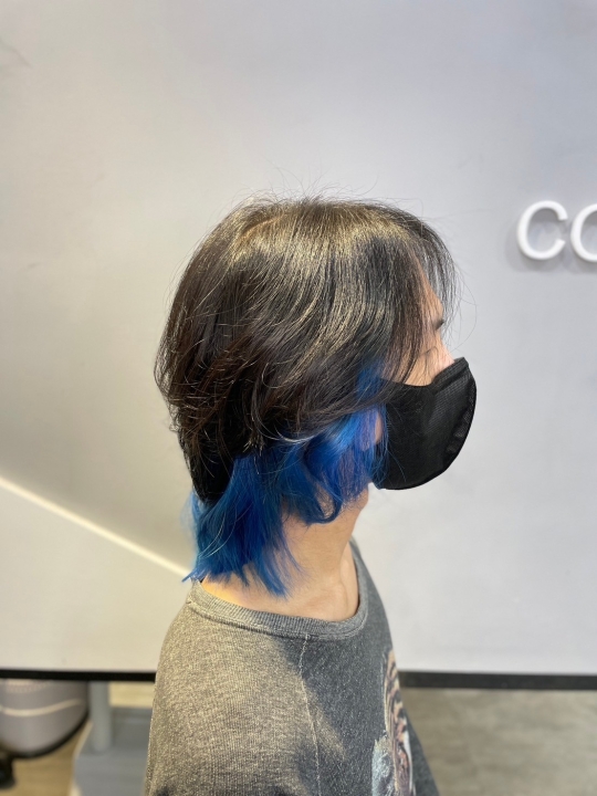 乾淨俐落的剪裁線條,搭配內層藍挑染,光線一照就透出細緻藍光✨