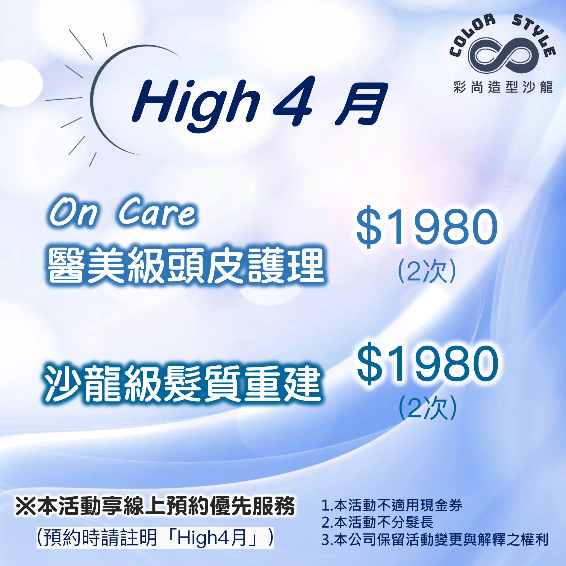2023.04.14 嗨4月~~~!! 頭皮保養/髮質重建,2次,只要1980!! High~ 4月,頭皮保養/髮質重建,通通1980(2次) 點擊官方LINE 加好友,立即享有線上預約服務☛☛☛https://lin.ee/0OUCkic