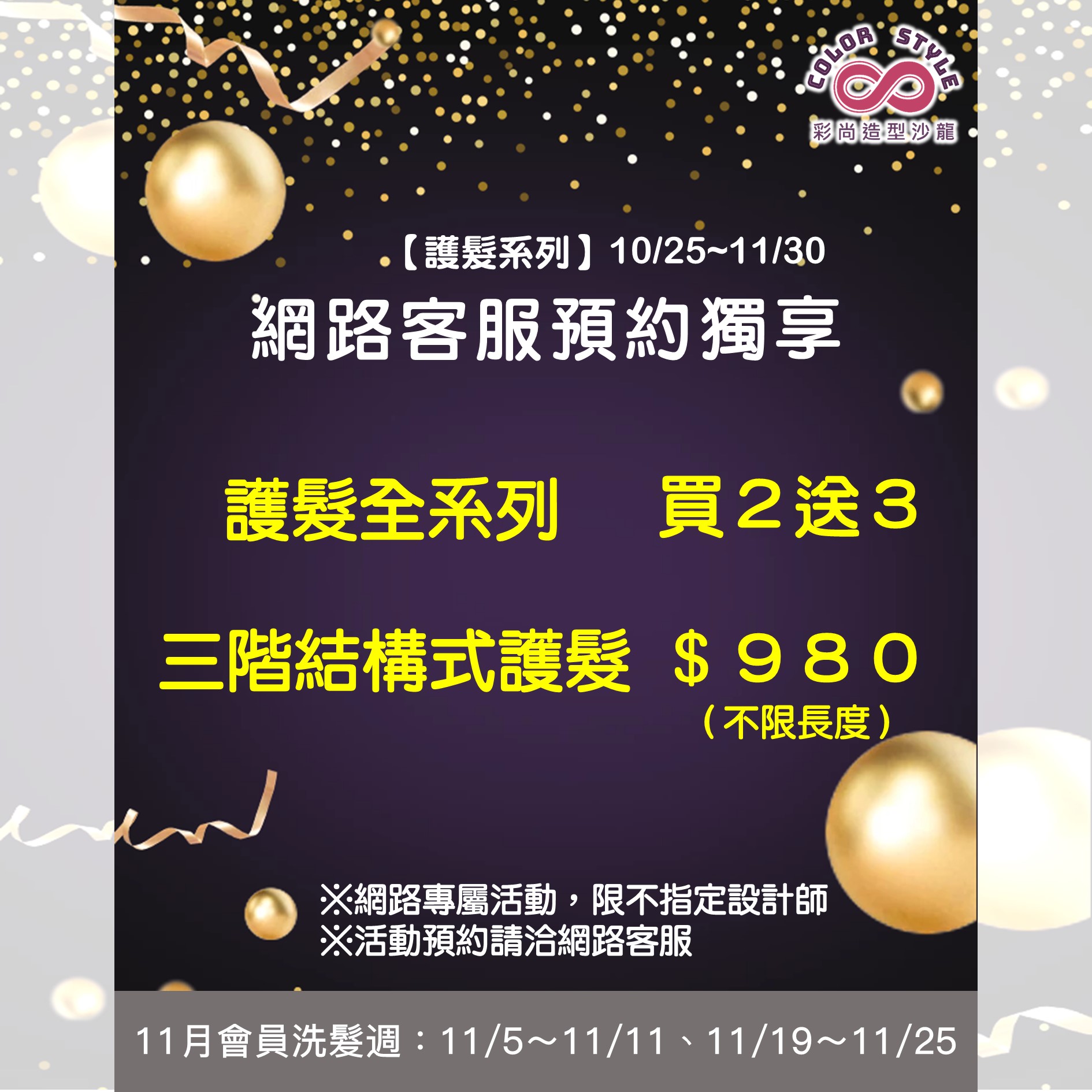 11/30前護髮讓網路客服來協助預約,可以享有更多優惠唷~